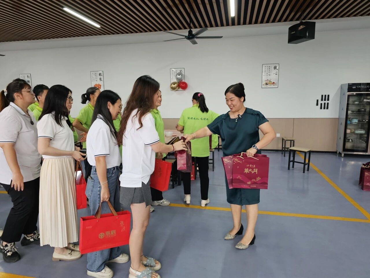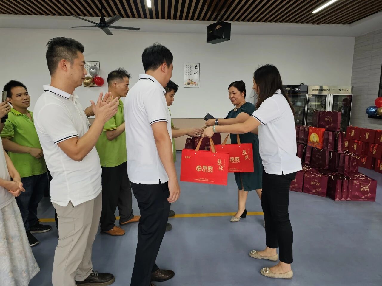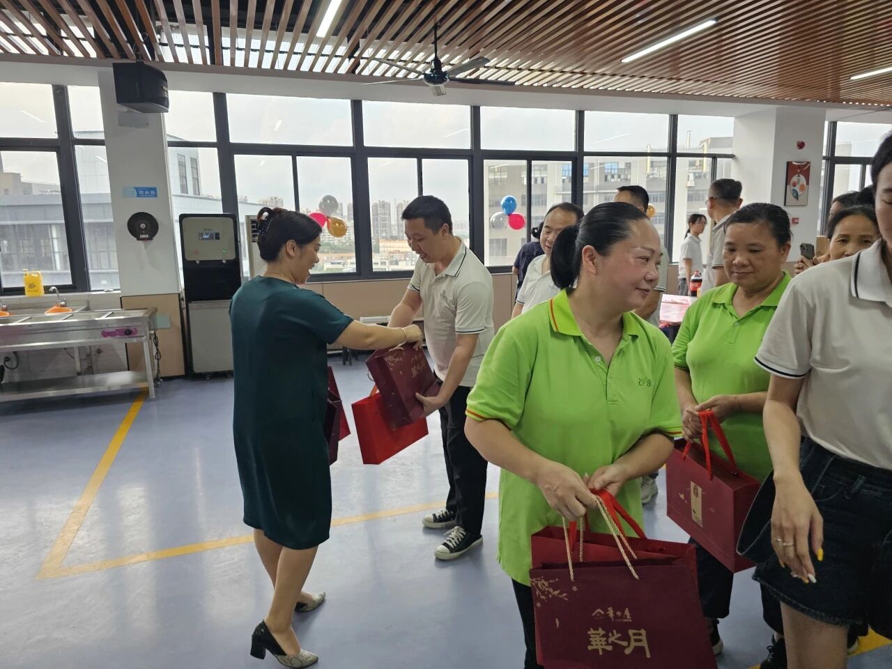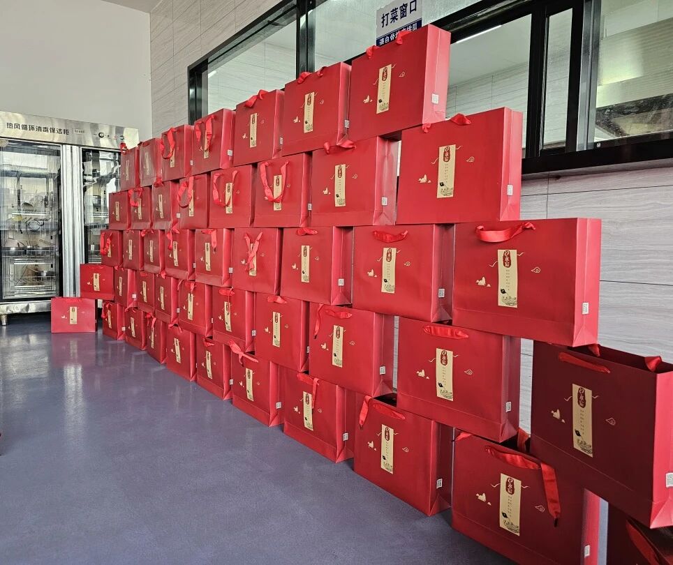 公司更为每位员工精心准备了节日礼物。红色的包装传递着节日的喜庆,员工们笑语盈盈,现场气氛温馨而热烈。