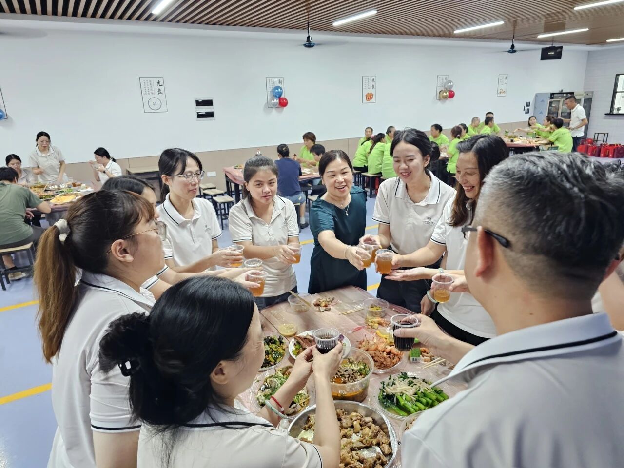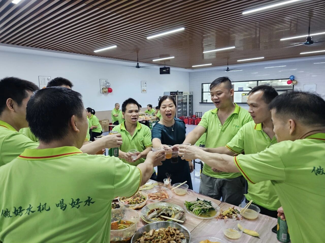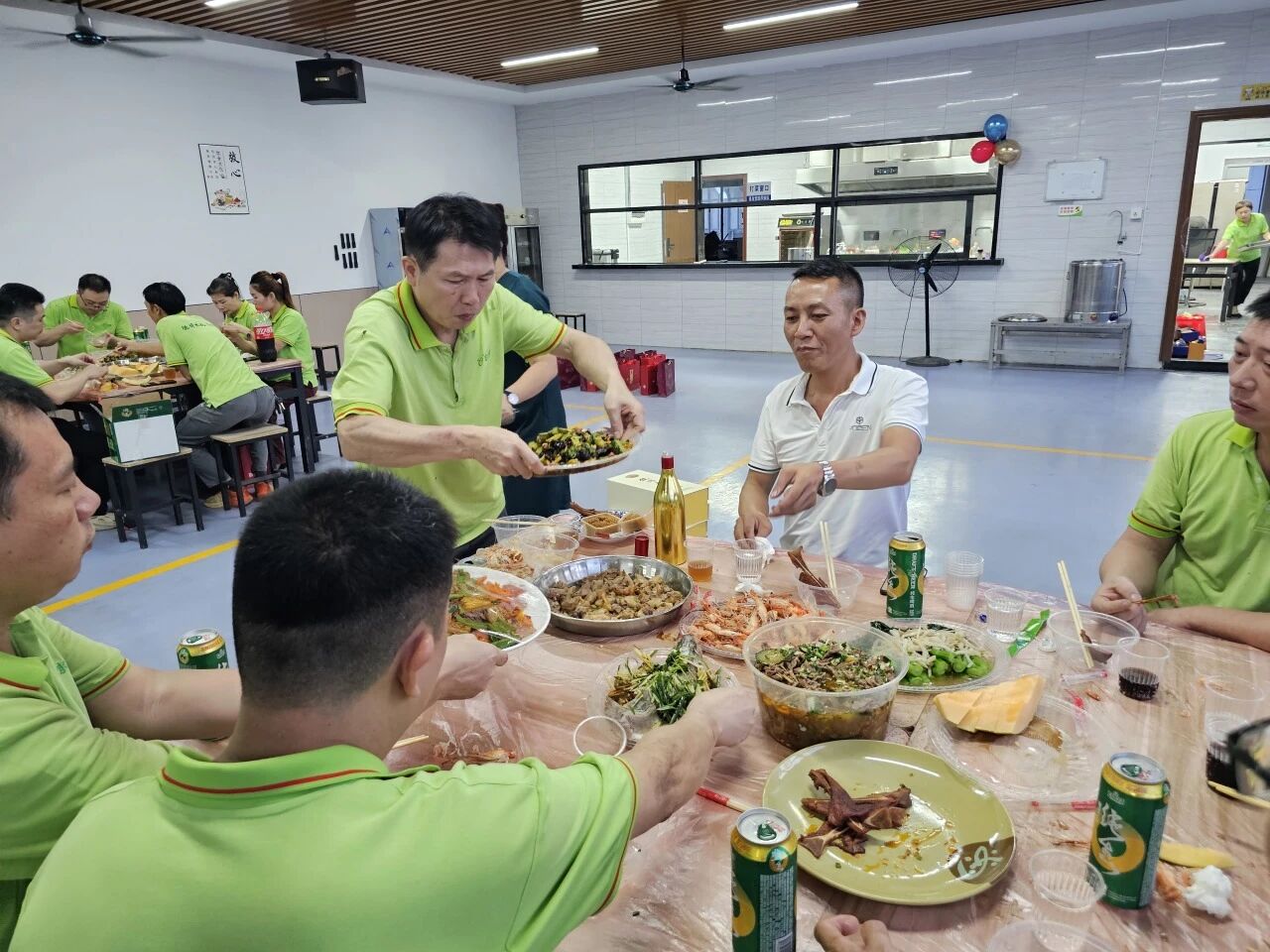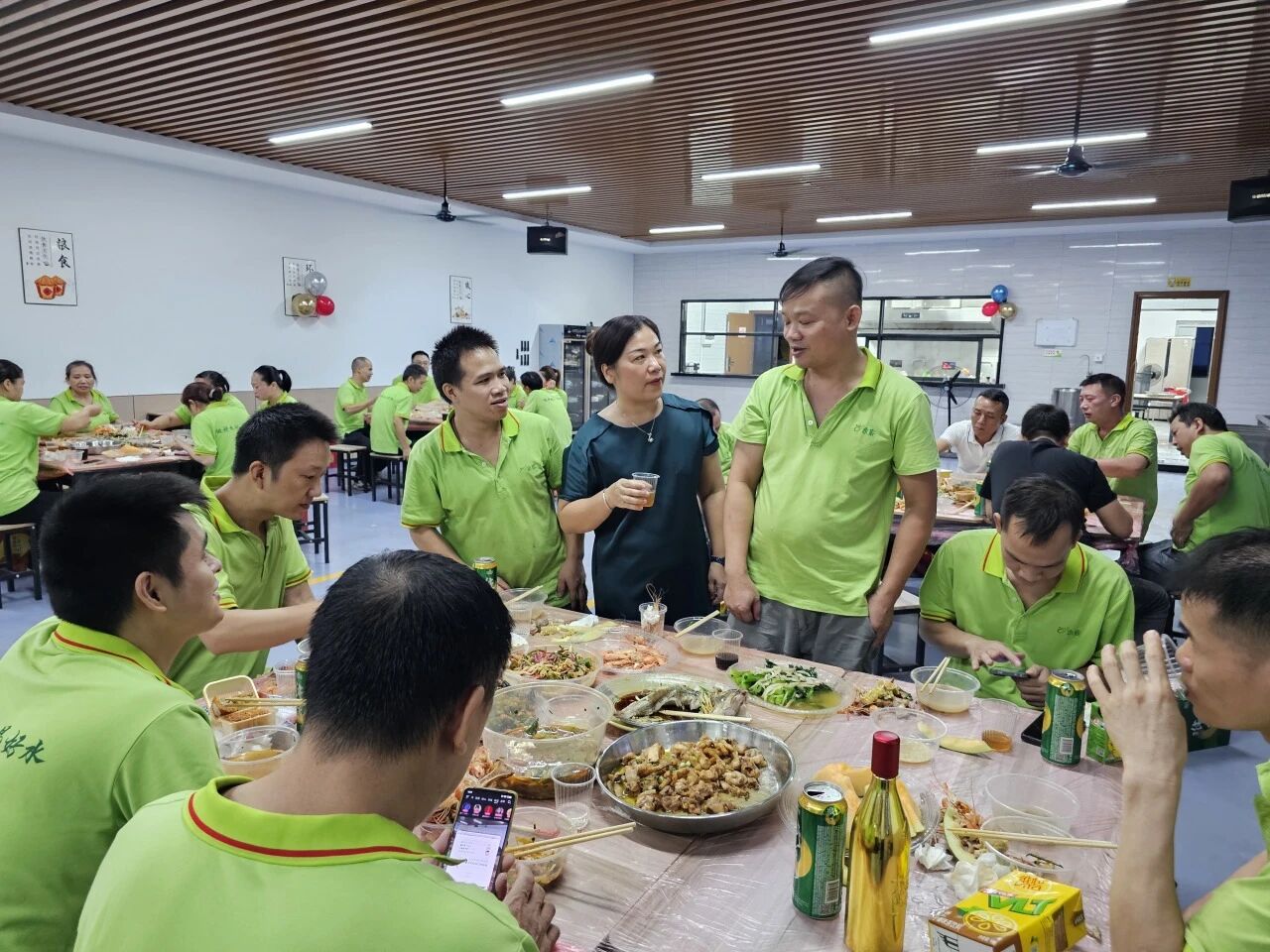 而水煮牛肉则麻辣鲜香、热气腾腾。大家围坐一堂,大快朵颐,在轻松愉快的氛围中交流畅谈,食堂内充满了欢声笑语,其乐融融如同一家人。