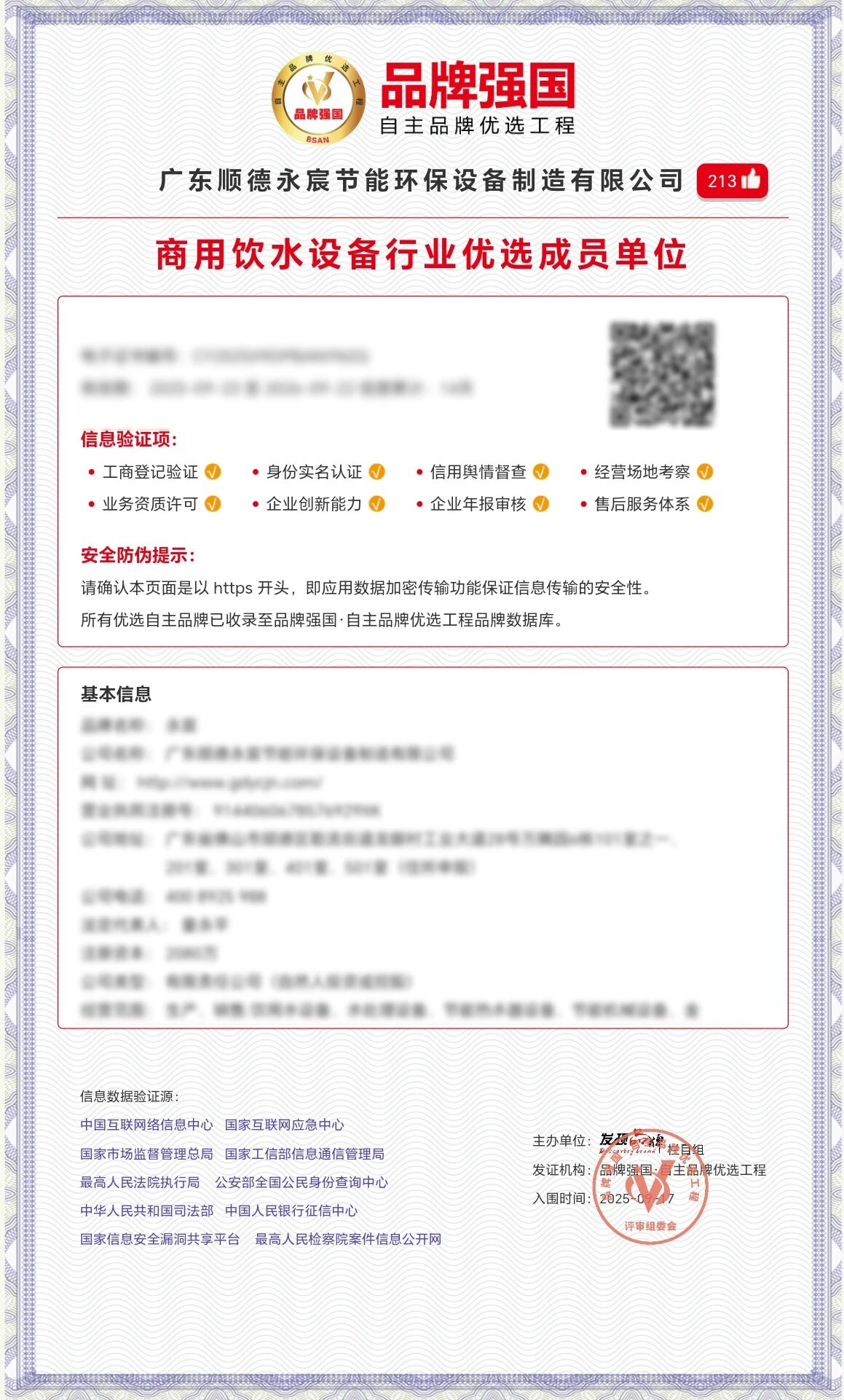 近日,雷火竞技官网入口通过国家“品牌强国自主品牌优选工程”多维度严苛评审,正式入选成为商用饮水设备行业优选成员单位之一。