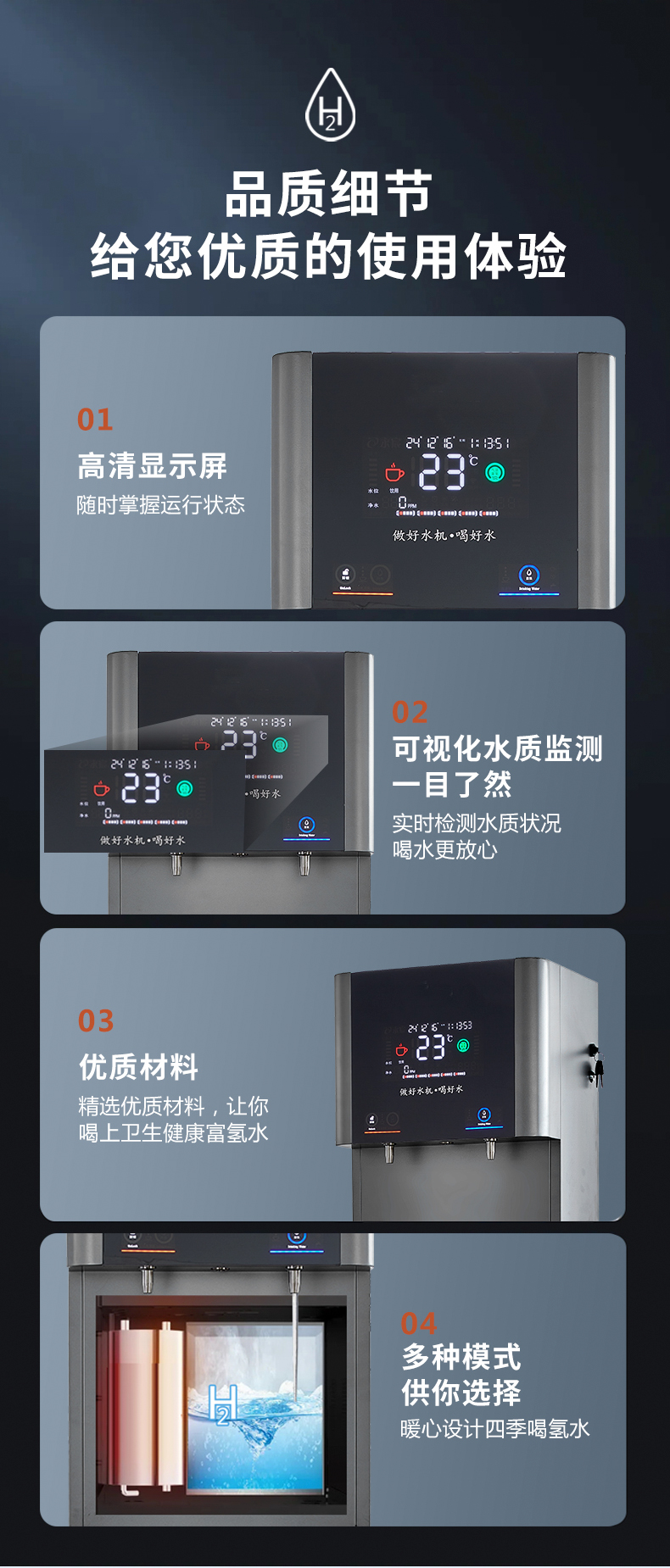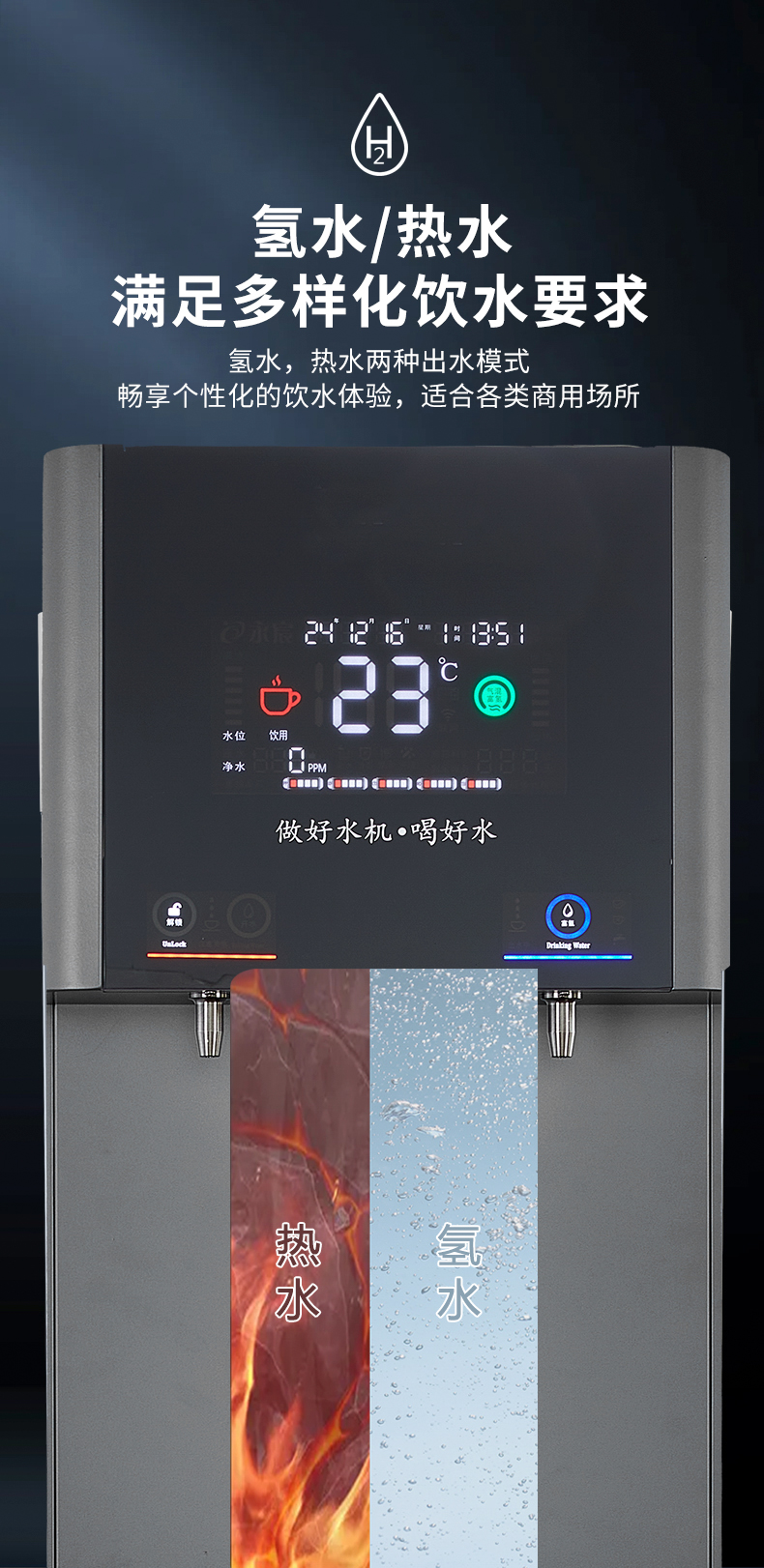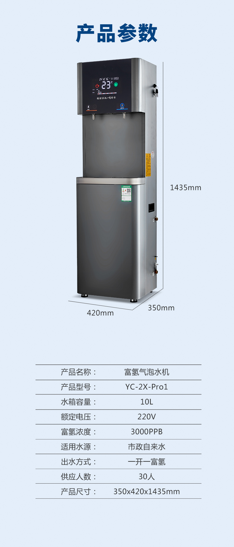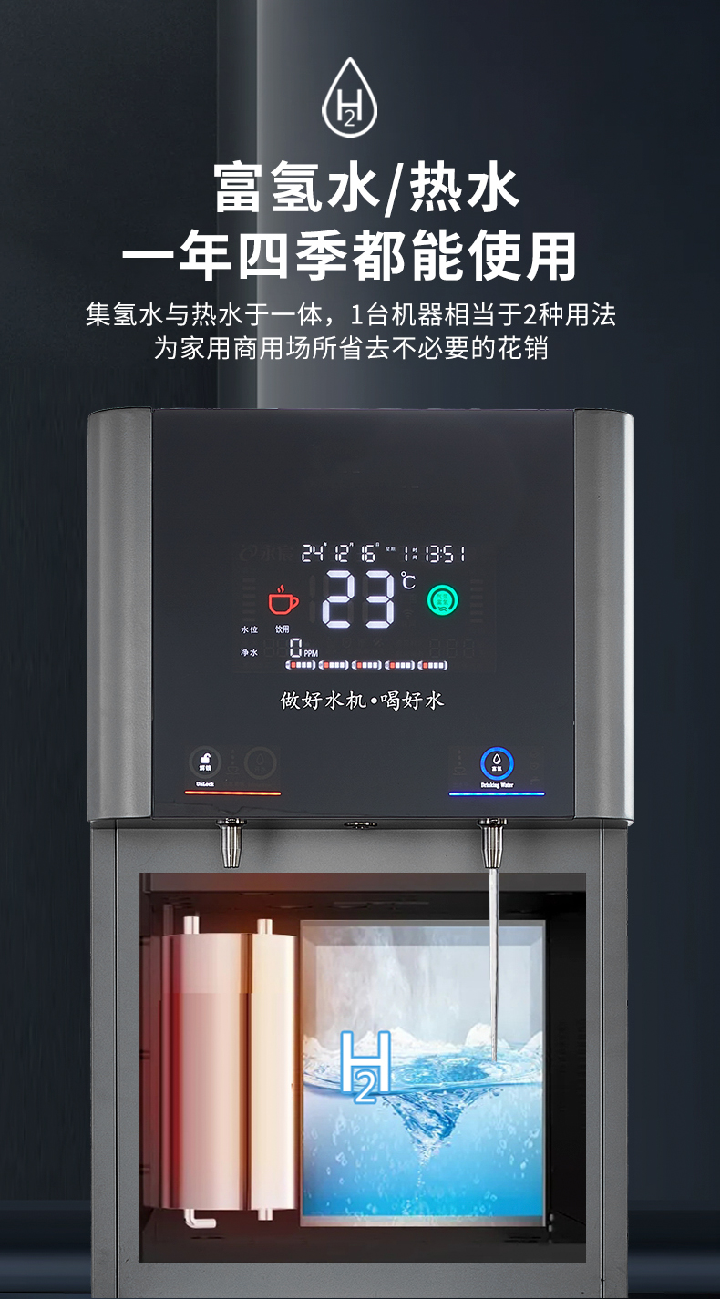 产水量:开水10L/H;富氢气泡水30L/H