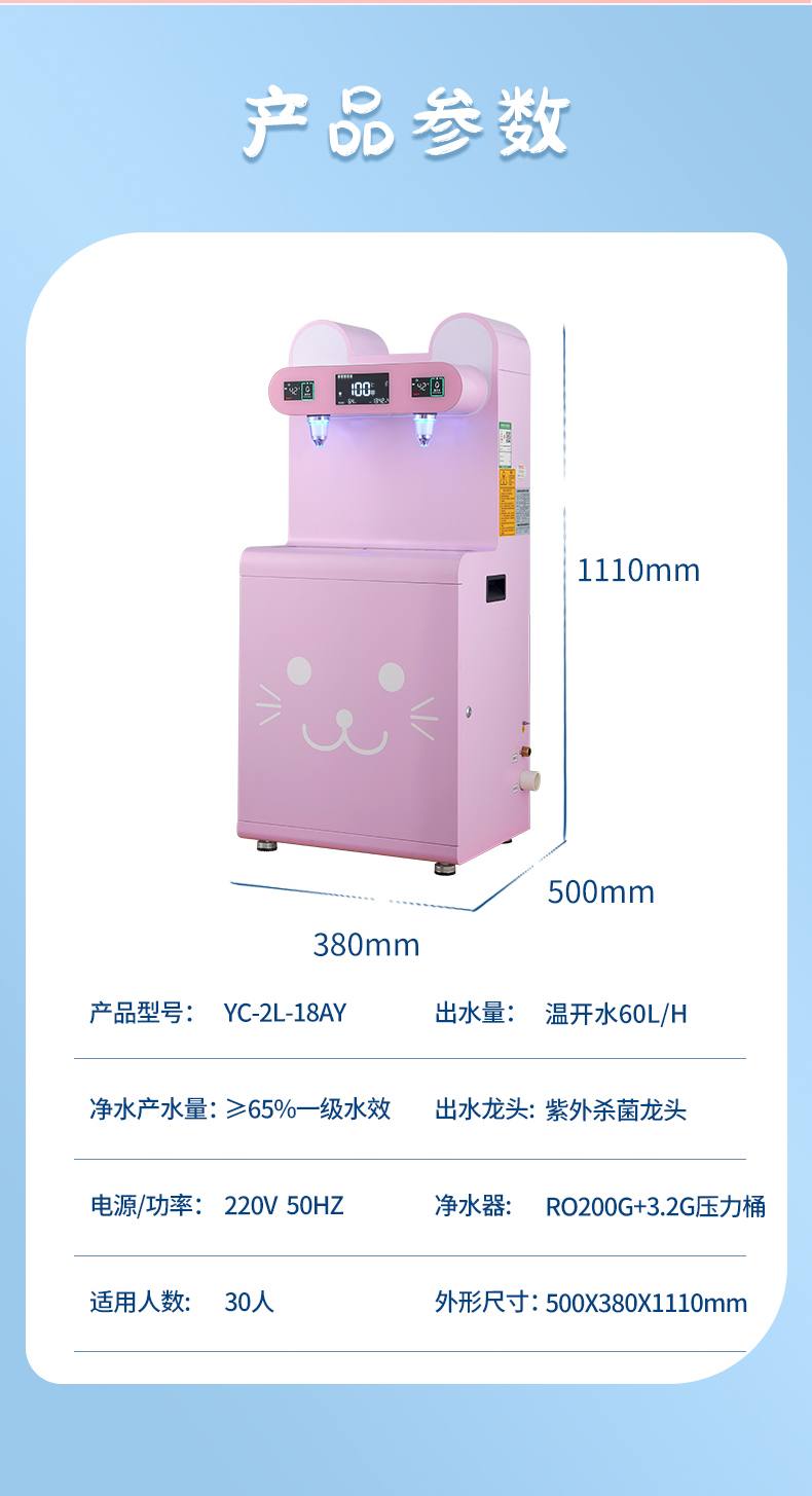 产水量:温开水60L/H