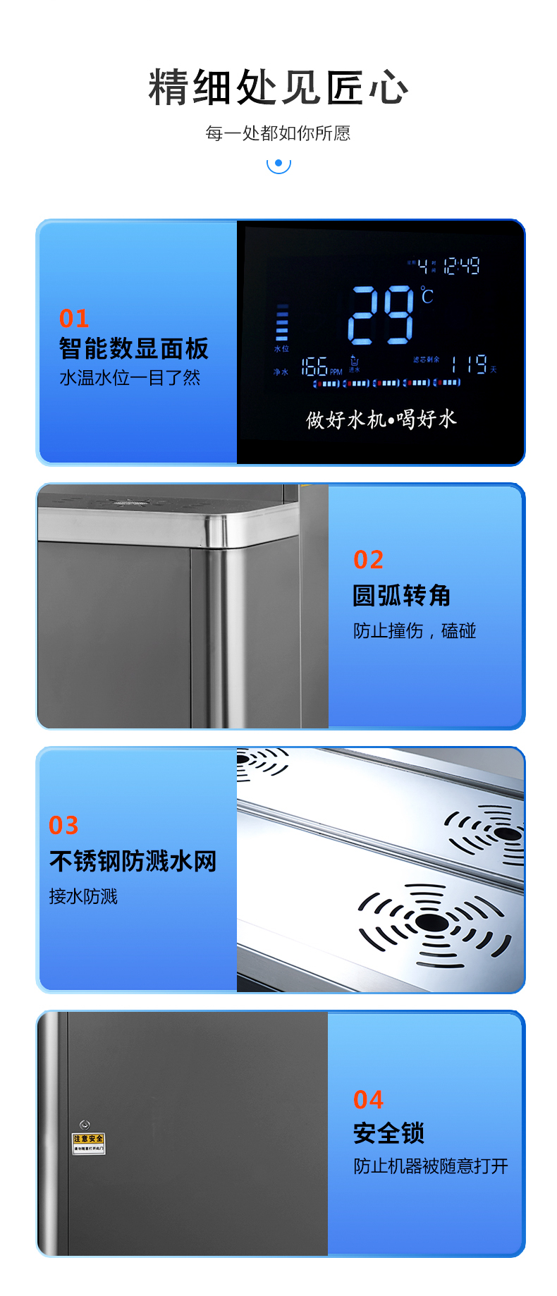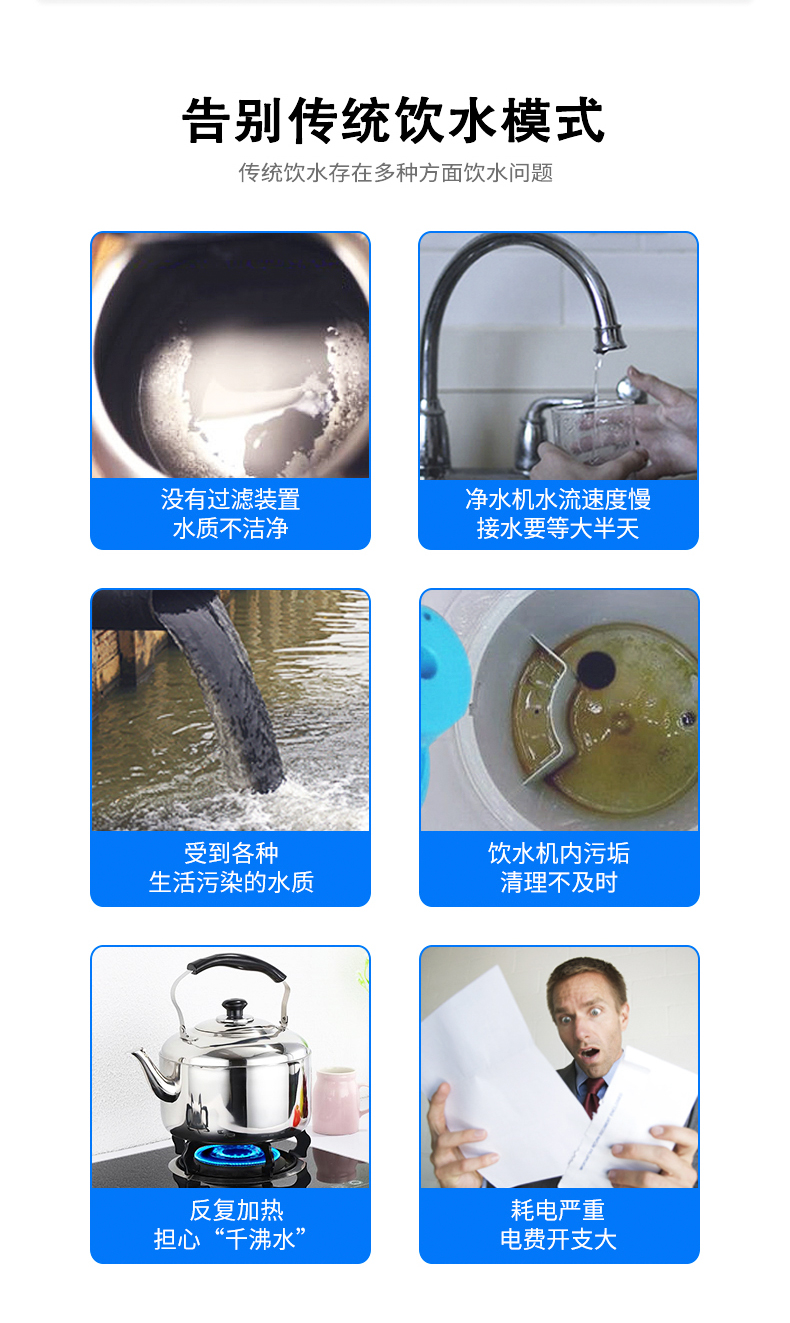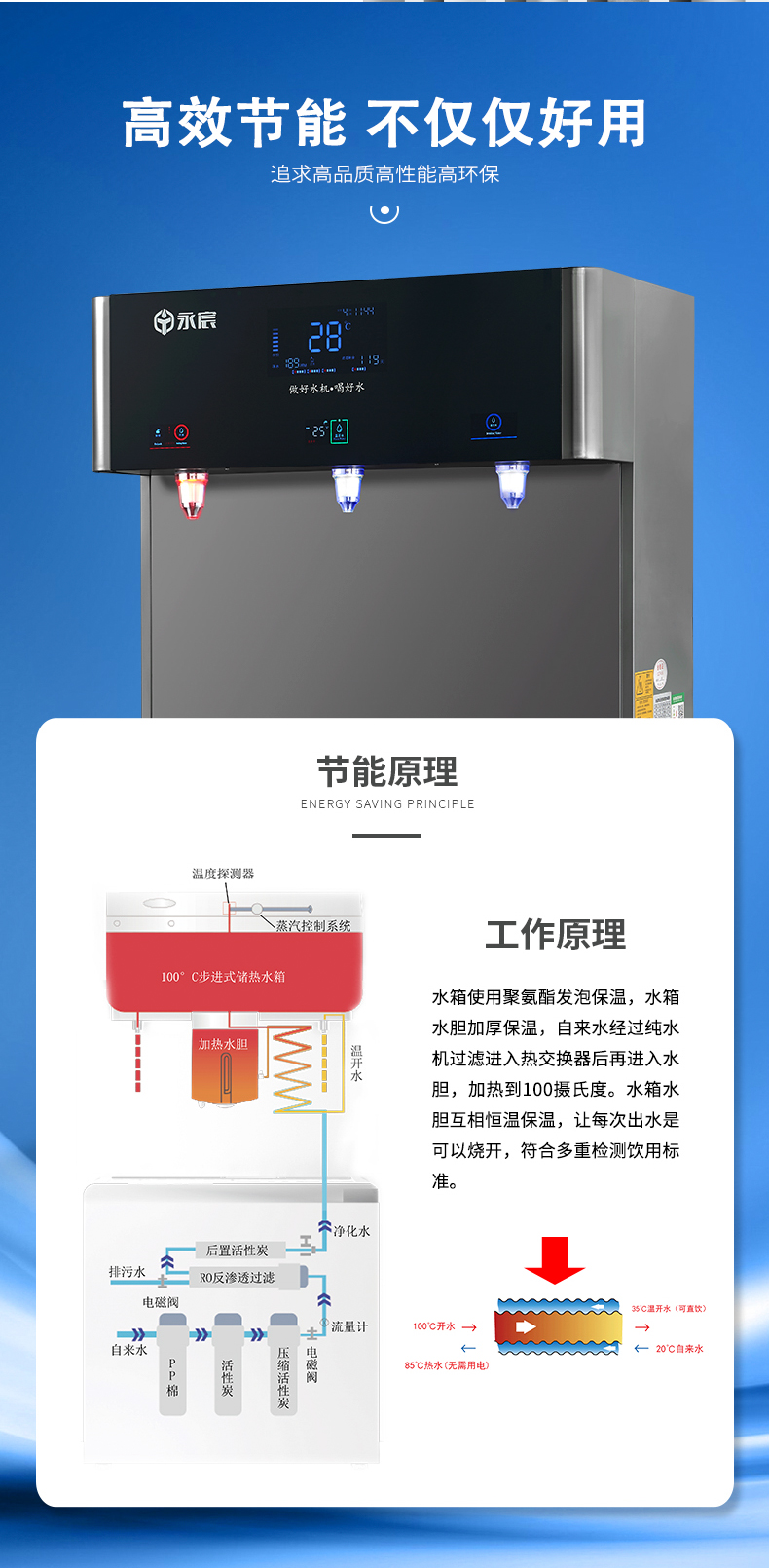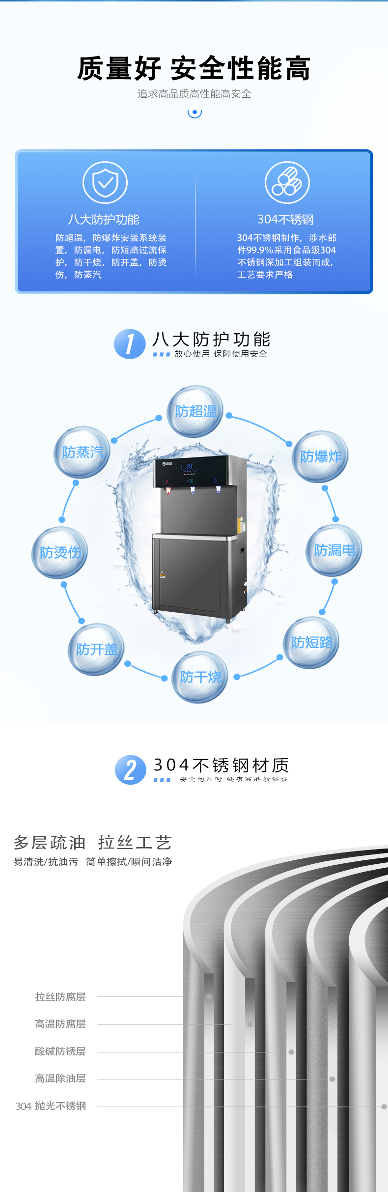 产水量:开水50L/H;温开水200L/H;直饮水60L/H