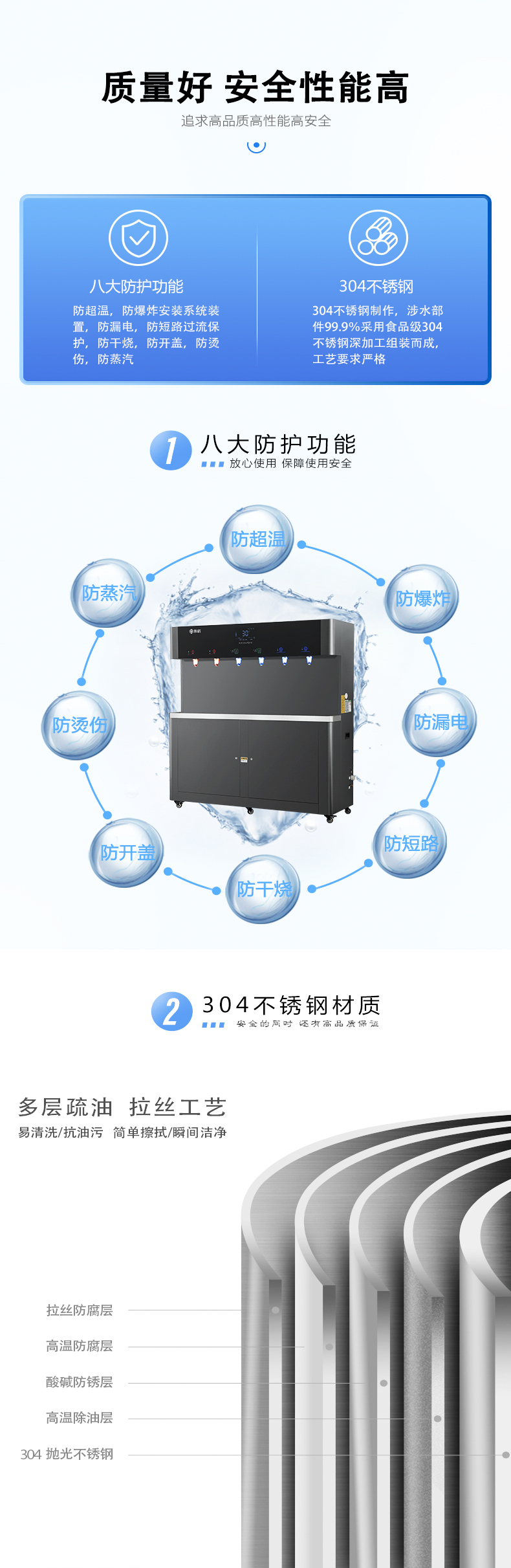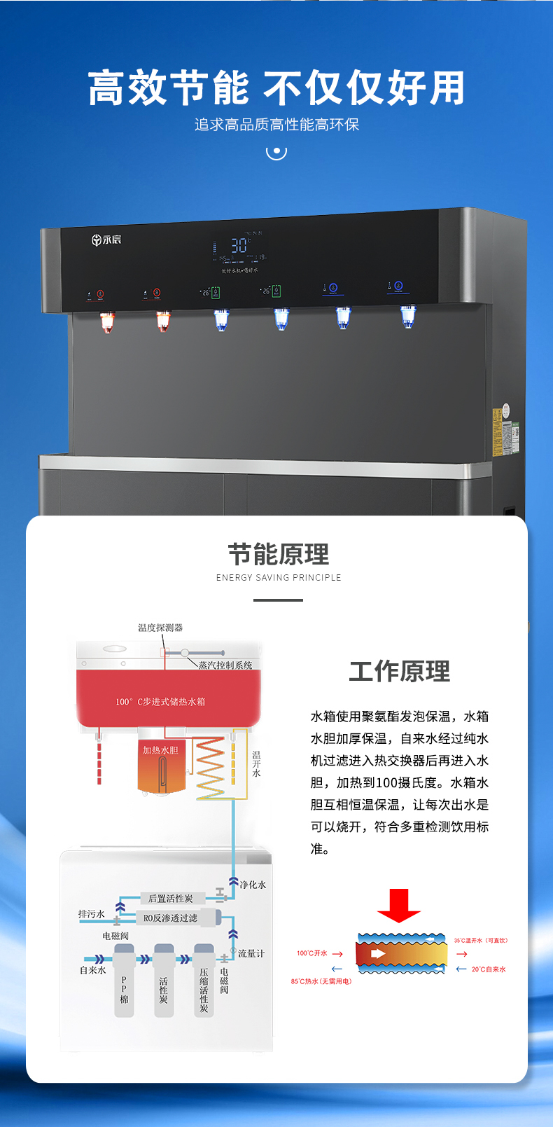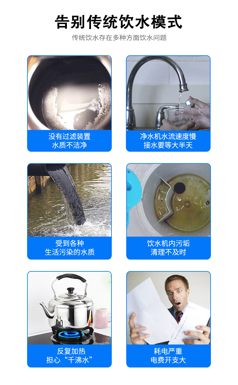 产水量:开水80L/H;温开水450L/H;直饮水120L/H