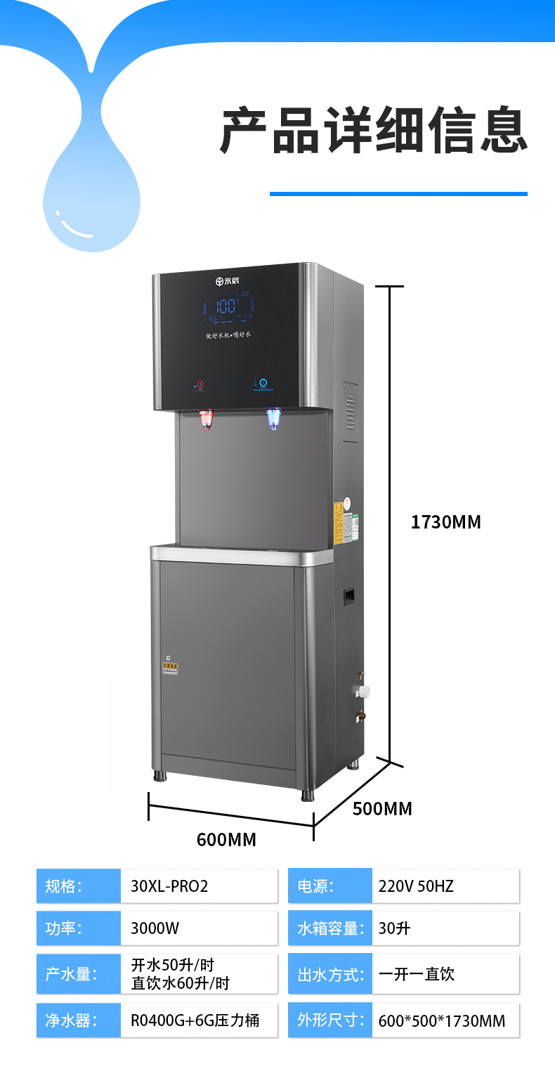 产水量:开水50L/H;直饮水60L/H