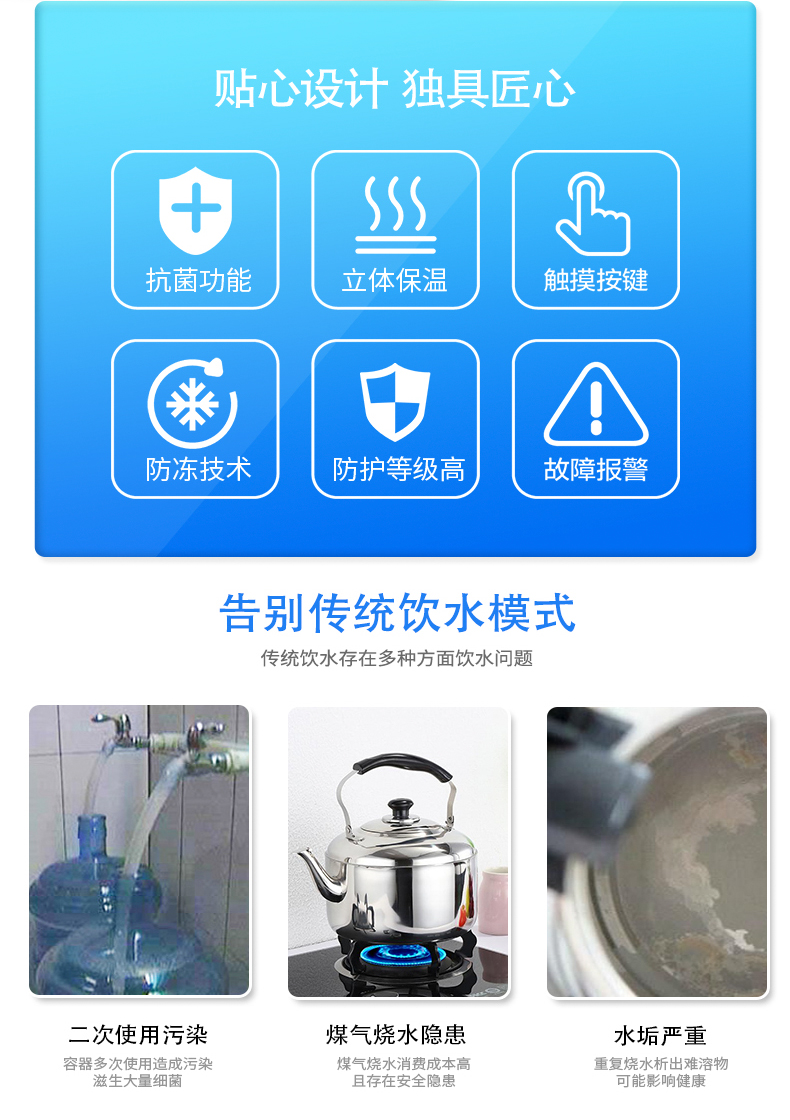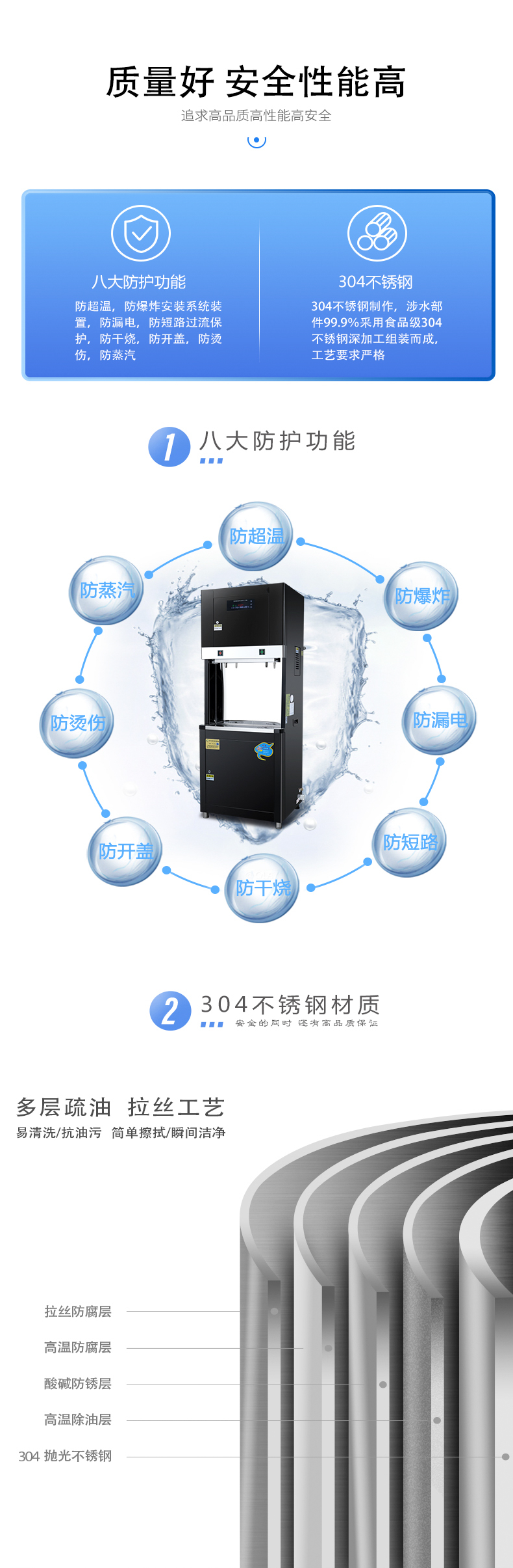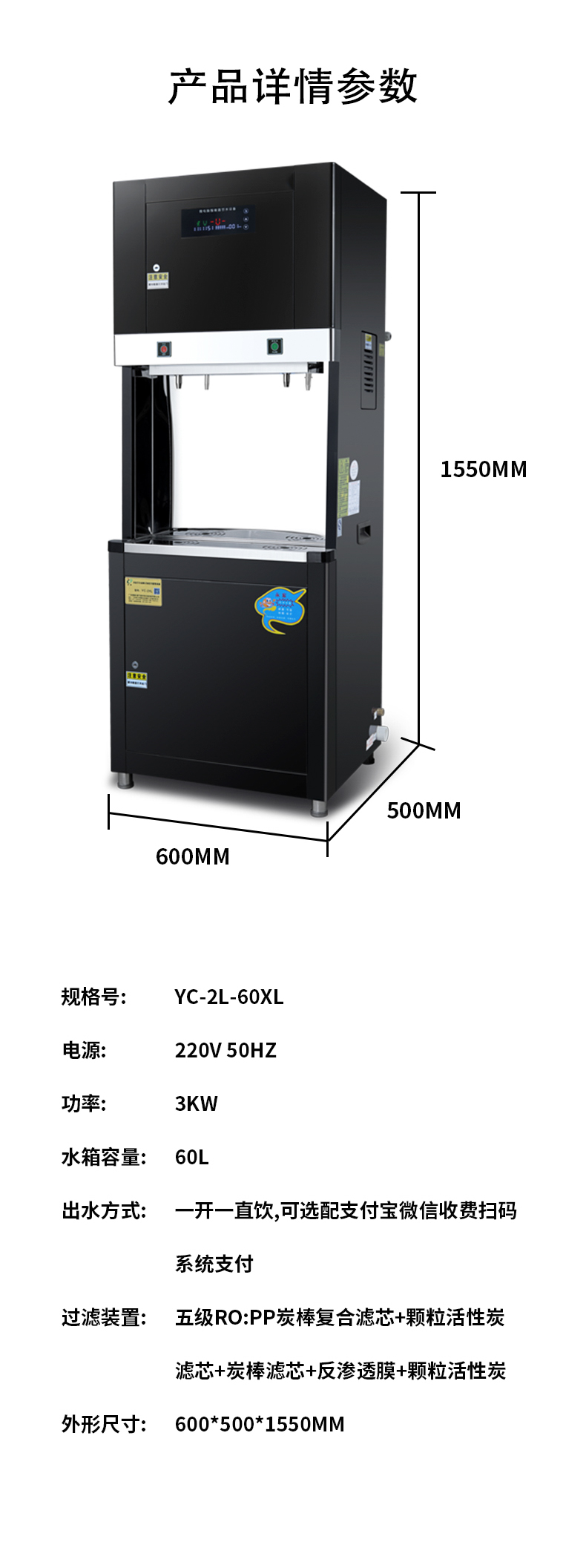 出水方式:一开一直饮,可选配支付宝微信收费扫码系统支付